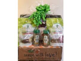 Pawtree dog and cat food supplements. You don't like to eat the same thing every day, and neither do your pets! Basket contains: 1 Paw Pairings Superfood Seasoning for Dogs/Cats in Chicken Liver Flavor, 1 Paw Pairings Superfood Seasoning for Dogs/Cats in Salmon Flavoring,1 Paw Treats Turkey & Papaya Strips-Grain Free treats, Paw Treats Beef, Sweet Potatoes, Peas & Carrots treats and 1 Owl Pet Toy-squeaks. Generously donated by Sue Palicki.