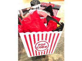 This yummy gift set includes a family-size microwave popcorn maker, Skittles, Milk Duds, Jiffy Pop, popcorn bags, and a popcorn bowl.