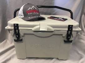 Start your next camping adventure with this SCHEELS cooler, New Belgium variety pack and a bottle of High West Whiskey.