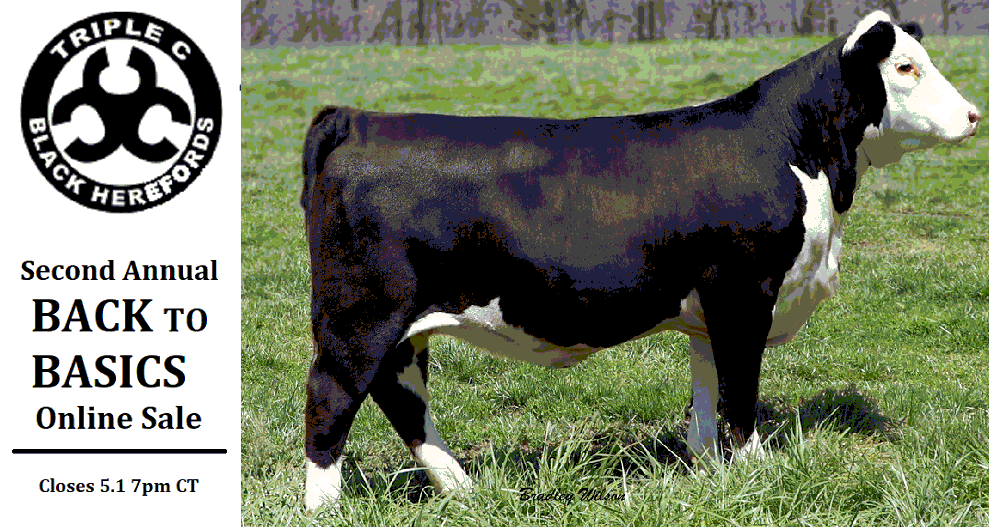 Here at Triple C Black Herefords, we are super excited about our second annual Back to Basics Online Sale. Our goal on the farm is to produce high quality bulls and females that are functional, profitable herd builders and we feel like this group fits that goal perfectly. These cattle will add value to your herd and we feel they will make an impact within the Black Hereford breed. We believe this is our soundest and stoutest set of Black Hereford calves to date. Throughout the entire offering, no matter your price range, there is something for you. With that being said, we strongly encourage everyone not to overlook this set of cattle. At Triple C, we believe in our ABHA junior program and feel that the juniors are indeed the future of our breed. With that being said, we see several females in this offering that are exhibiting tremendous show ring potential and could be most competitive in the second annual Black Hereford Junior Nationals coming up in June.