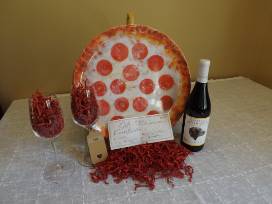 Enjoy two 18-inch 2-topping pizzas with this gift certificate from Randy's Pizza on Lake Boone Trail! Bring it home and serve it on this colorful pizza platter. Enhance the experience with a bottle of Our Dog Blue white wine from Chateau Morrisette served in Riedel Vinum wine glasses made of machine-blown leaded crystal and shaped for each type of wine or beverage. This set is perfect for Riesling!