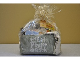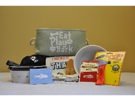 - A set of two kitchen towels, one with a dog on the front and "Been there, chewed that."