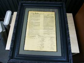 Winner to receive museum-quality framed parchment copies of the constitution and declaration of independence. Each document is printed on parchment paper to replicate the look of the original documents. These feature deep and heavy, high quality frames with museum glass to protect copies from UV damage. You must see these matching framed copies to see the quality.