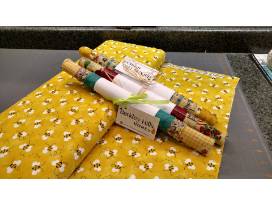 Your taste buds will thank you for purchasing this bundle of organic honey from a Kentucky beekeeper. Basket comes with two jars of honey, a 12 oz jar of whipped honey, set of three sandwich/cheese wax wraps (an excellent upgrade from plastic wrap), handcrafted lotion bar, handmade soap bar, and beeswax candle. Each item was made by the Barkley Hills beekeepers from the honey and wax produced by their hives. Every item in this basket is a real treat!