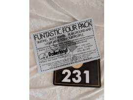 -Skating Admission, roller skate rental, playground admission and laser maze two times for up to four people. You may substitute the playground for two extra runs through the laser maze. No other substitutions allowed.