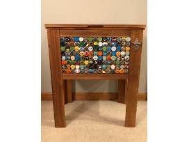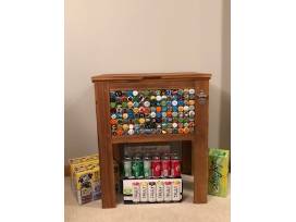 Enjoy the 4th grade's shiplap amber log, wooden slat encased cooler. This unique cooler is a perfect way to support St. Dominic Catholic Parish and your drinking (in moderation) habit. The front of the cooler features an intricate pattern of student-decorated and designed bottle caps along with a bottle opener mounted to the side. What a fun and useful item for your backyard barbecues in the summer or feature it in your very own home! Also includes beverages to enjoy! Donated by the 4th Grade Class. Value: Priceless