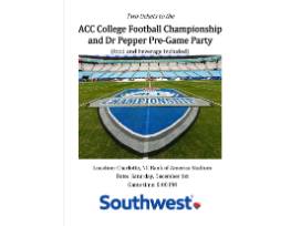 - Two tickets to the ACC Football Championship game in Charlotte, NC on December 1, 2018
