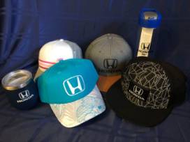Four Honda designed hats, stainless steel wine cup & water bottle.