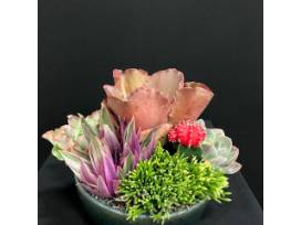 Succulents in dark-glazed pot