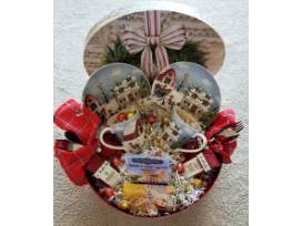 The gift box includes 2 plates, 2 coffee cups, 2 packs World Market Holiday Coffee & 2 Napkins with flatware. Of course the high bidder gets the box too