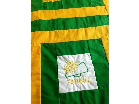 Are you a football mom or alumni? This handmade quilt is for you! Features quilted squares of things Titan and football. A comfy and cozy gray backing will keep you warm at each and every event!