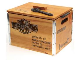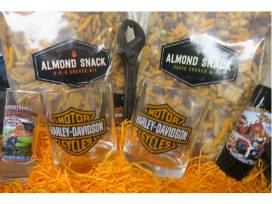 This basket packs a punch worthy of the brand its sporting. Ibcludes crate beer cooler filled with snacks and glasses, as well as a decanter emblazoned with the Harley-Davidson logo, packed in ruric crates.