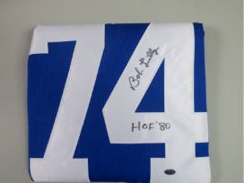 "Bob Lilly HOF '80" was inscribed by "Mr. Cowboy" himself on this Dallas Cowboys jersey.