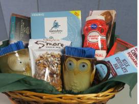 In addition to the enviable Keurig machine and Caribou K-Cups, this basket boasts cookies, creamer, charming ceramic mugs, and internationally-inspired cookies to ensure a fine start to you morning.