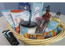 Make focus feel a little less daunting with a basket full of products including assential oil-infused products, mira insulated water bottle, and superfood-filled snacks.