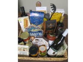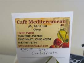 A handsome Turkish Plate with stand; gourmet Mediterranean basket of pastas, sauces, wines and other delights; AND a $25 gift certificate to Café Mediterranean in Hyde Park.