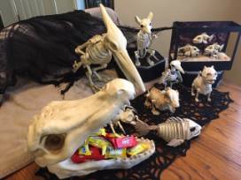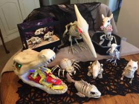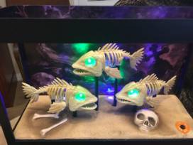 These animated boneyard buddies are sure to haunt any party. The fish are swimming with their eyes lit up and the freaky sounds make for a creepy group!