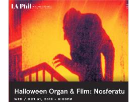 Halloween night brings the classic German black & white horror film, Nosferatu, to Walt Disney Concert Hall accompanied by thrilling organ accompaniment by Clark Wilson.