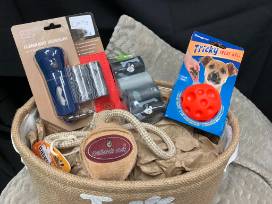 Pamper your pup with an assortment of accessories designed to please. This package includes a bed, food bowels, drying towel, clean up bags, leash, Pet's smart gift card ($25), paw wipes, and so much more.