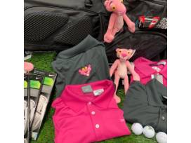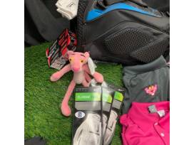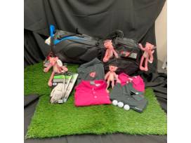 Enjoy this fantastic auction package including Callaway Bag, 2 men's and 2 women's golf shirts, plus assorted golf accessories.