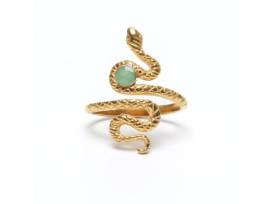 Ring details: 14ky gold-dipped snake features a natural green chrysoprase; this adjustable ring will accommodate sizes 6-7.