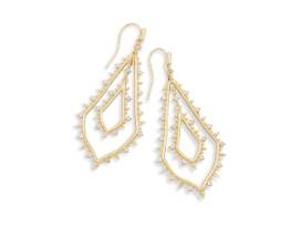 One (1) pair of gold Alice earrings with CZ stones and one (1) gold Claudia Lariat necklace with CZ and drusy stones, both by local designer Kendra Scott.