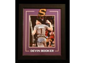 13x10 color photo of Phoenix Suns player, Devin Booker. Autographed by Devin and authenticated. This photo is matted and framed and ready for display.