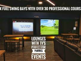 - Six Full Swing golf simulators with surrounding lounge and televisions for year round golf.