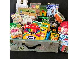This basket is CHOCK FULL of paper, markers, crayons and everything under the sun to keep your kiddo creative this summer!