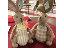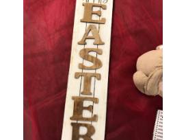 Wooden plank Easter sign and pair of Peter Rabbit bunnies