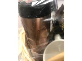 Enjoy your coffee in style! This package includes four Kate Spade Stacking Mugs, two coffee tumblers, and three premium ground coffees.