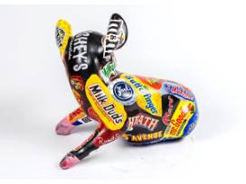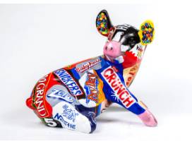 DESCRIPTION: Maddi'es inspiration was a project she did for an Earth Day event at her school.. in which the body of a fish was a Fritos bag. Using acrylic paint, she covered the form in overlapping logos and wrappers of chocolate bars, candy, chips, snacks and sodas. The name is a nod towards Willy Wonka, a fictional character in Roald Dahl's 1964 children's novel Charlie and the Chocolate Factory.