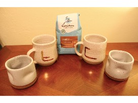 Covet and Ginger Pottery Mugs (2) and Dimpled Whiskey/Bourbon Tumblers (2)