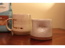 We do not employ the use of molds in our studio; each piece is thrown on the potter's wheel, tumblers are altered, and handles are pulled individually. Each cup is unique due to our hand-crafted process, so please keep this in mind when ordering, as each item will vary slightly from the photograph.
