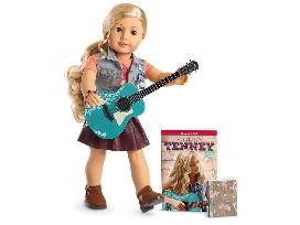 Tenney Grant is an American Girl doll with long blonde curls that can be styled, eyes that open and close, a cloth body, and movable head and limbs. She's a determined songwriter who makes music straight from the heart. Package includes doll and 1 book with her story!