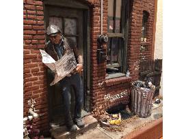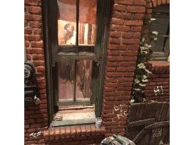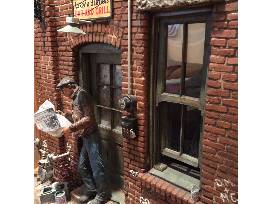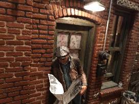 Yesterday's News with Magic is a rare CityScape. It includes a trick lighting element developed for creating illusions in Magic Town. The "magic" allows the scene behind the window to showcase two different interior rooms.