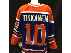 Esa Tikkanen Edmonton Oilers Signed Blue Retro CCM Hockey Jersey.