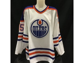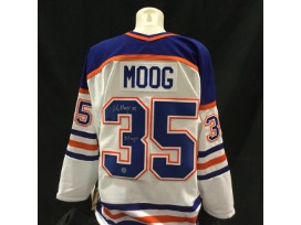 Andy Moog Edmonton Oilers Signed with "3 Cups" Inscription. Retro CCM Hockey Jersey.