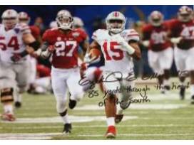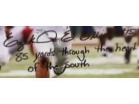 11x14 photo hand signed by former Ohio State Buckeye running back Ezekiel Elliott, who helped lead the Buckeyes to the 2015 National Collegiate Championship. Photo is from the 2015 Sugar Bowl vs Alabama, in which Elliott ran for 230 yards on only 20 carries. In this first ever college playoffs, Zeke help lead the Buckeyes to a hard fought 42-35 win.