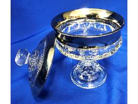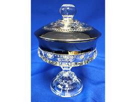 antique King's Crown glass & silver candy dish with lid