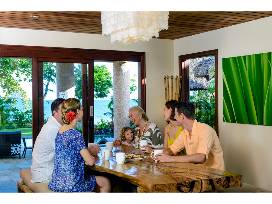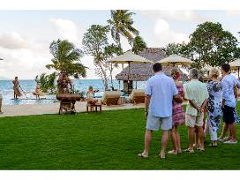 One of Fiji's most celebrated boutique hotels is conveniently located next door. The resort's facilities include an oceanfront clubhouse, award-winning cuisine, a spa and gym, a concierge to coordinate off-resort adventures, motorized water sport rentals, kids' programs and family-friendly activities. Additional fees apply for meals, spa and some activities.