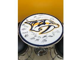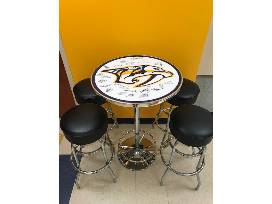 Nashville Predators pub table autographed by 2017-2018 Nashville Predators team. Table comes with four barstool chairs.