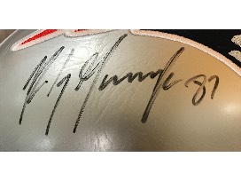 Silver football autographed by New England Patriots #87 Rob Gronkowski