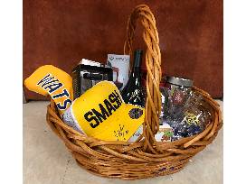 Saturday night wine and Sunday morning coffee basket. Items include: