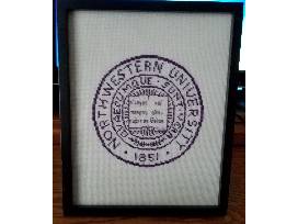 Framed Northwestern University Seal - handmade needlepoint 8 x 10inches Vintage 1955 Tray with Scenes of Evanston & Northwestern - 8 3/4 x 14 inches