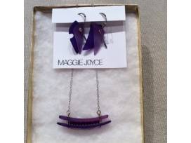 Sterling Silver necklace with contemporary purple designed pendant and silver with purple earrings.