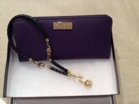 Henri Bendel purple wallet and leather necklace with multi-colored stones.