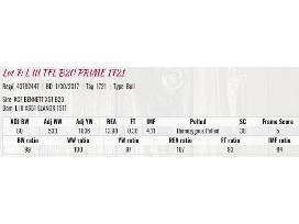 1721 is a KCF X51 B20 x a Tested X651 daughter. This is a magic cross, B20 steers have harvested very well through our retail outlet. This bull is stacked - take a close look at his graph. Big hipped, deep ribbed and structurally perfect. Tops out in so many EPDs and $Indexes. Top 1% for CW, REA, Marb, $BII, $BMI; Top 5% for WW, SCF, US, CEM, $CHB. Homozygous Polled