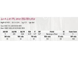 1731 is a Tested X651 son x an Ellis daughter that goes back to Feltons 517. We really like this bull and think he has a promising future. Thick, stout and high growth. Top 1% for SC, CEM, Marb; Top 5% or better for CED, BW. A Tested X651 son is a sure bet. Homozygous Polled