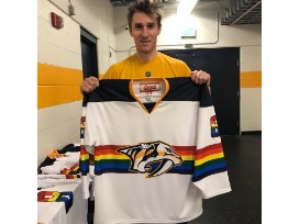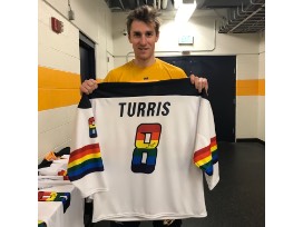 Limited Edition Preds Pride Night hockey jersey autographed by #8 Kyle Turris (name/number on back)